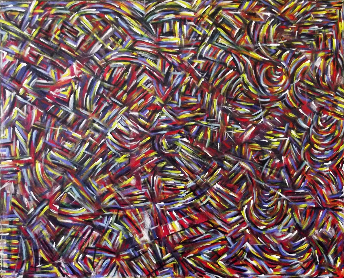 Obraz ze série Interpretation Of Organ Music. Obrazy z této série vnímám jako vizuální partitury. Vycházím ze skladeb oblíbených autorů, které jsem se buď naučil nebo je obdivuji. Malba přenáší rytmus, vrstvení a kombinace do vizuální struktury, kde se prolíná složitost hry s obrazovým jazykem.